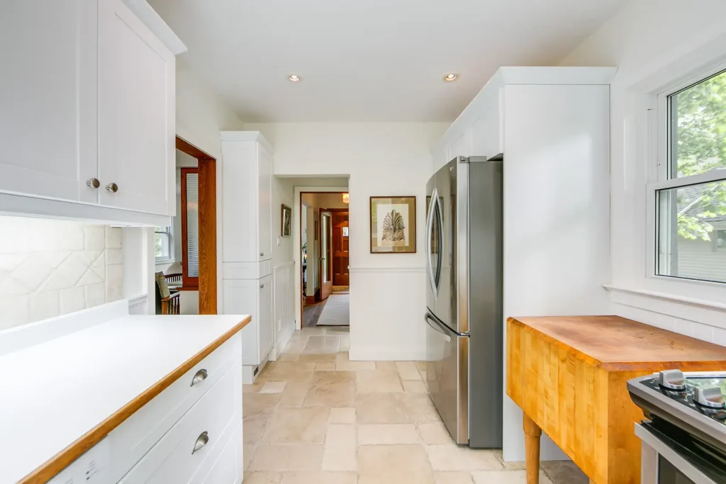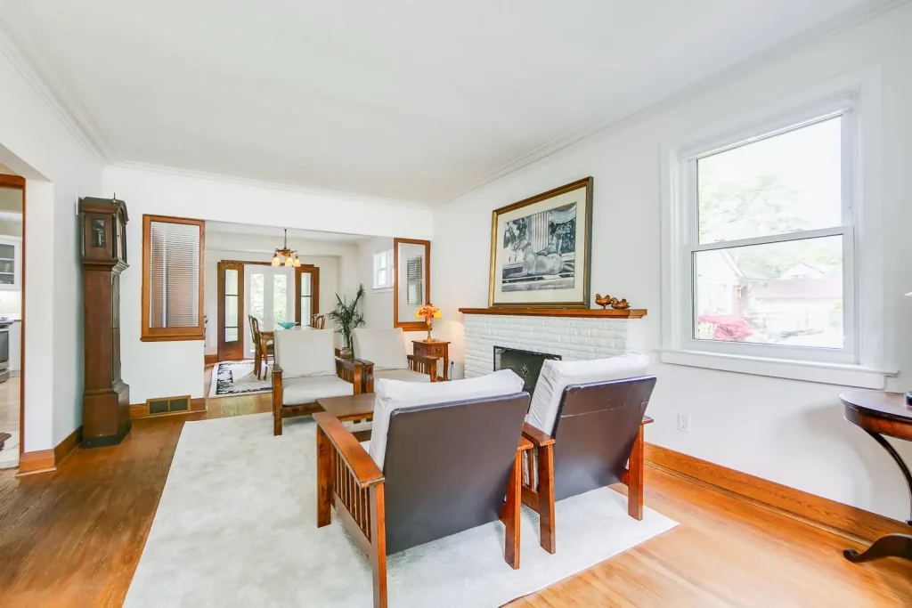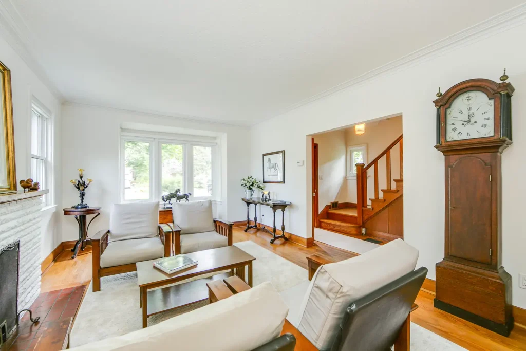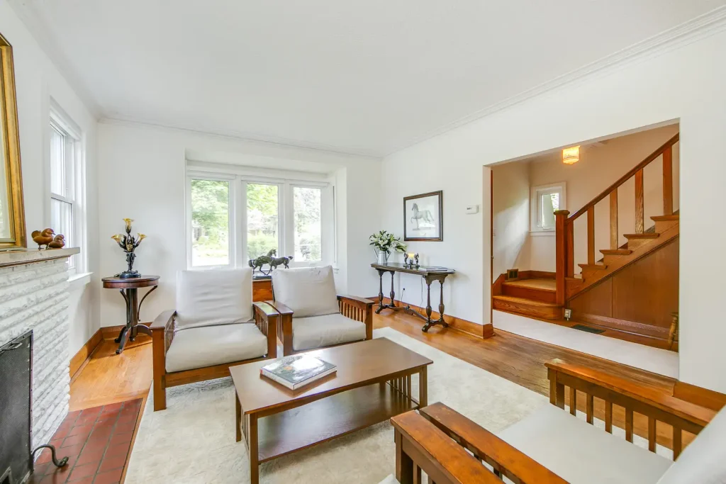 Superior finishes throughout include a Designer kitchen with an island to seat four, CaesarStone countertops, white oak wood floors,exposed brick, glass panel railings, pocket doors, freshly painted, landscaped front garden and new cedar porch (2023) This a home not to be missed with smartly designed spaces for urban living.