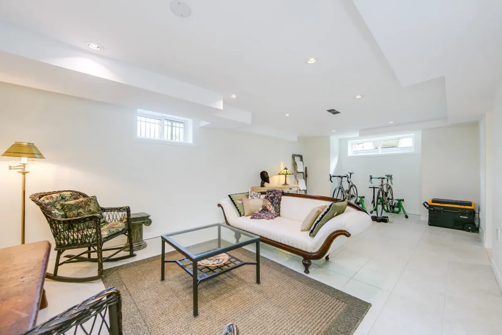 Three generously sized bedrooms with custom closets, two on the second level and one on the third. Recently renovated third floor boasts a tranquil retreat with bedroom , 3pc bathroom and walk out to a private tree-top terrace. A fully finished basement with eight foot ceiling height and radiant floor heating, provides for a spacious recreation area, an office space, and laundry room with 2pc bathroom.